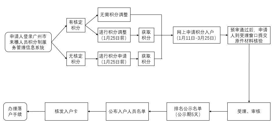 需要申报2018年度积分制入户的来穗人员,请于2019年3月25日17:00前,登录“广州市来穗人员积分制服务管理信息系统” 提出积分制入户申请,持相关材料原件到积分制入户受理窗口核验并确认入户意愿。