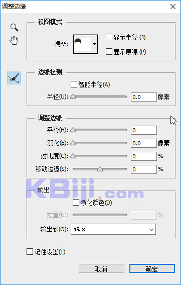 在调整边缘控制面板中勾选智能半径,此时默认工具为"画笔"。
